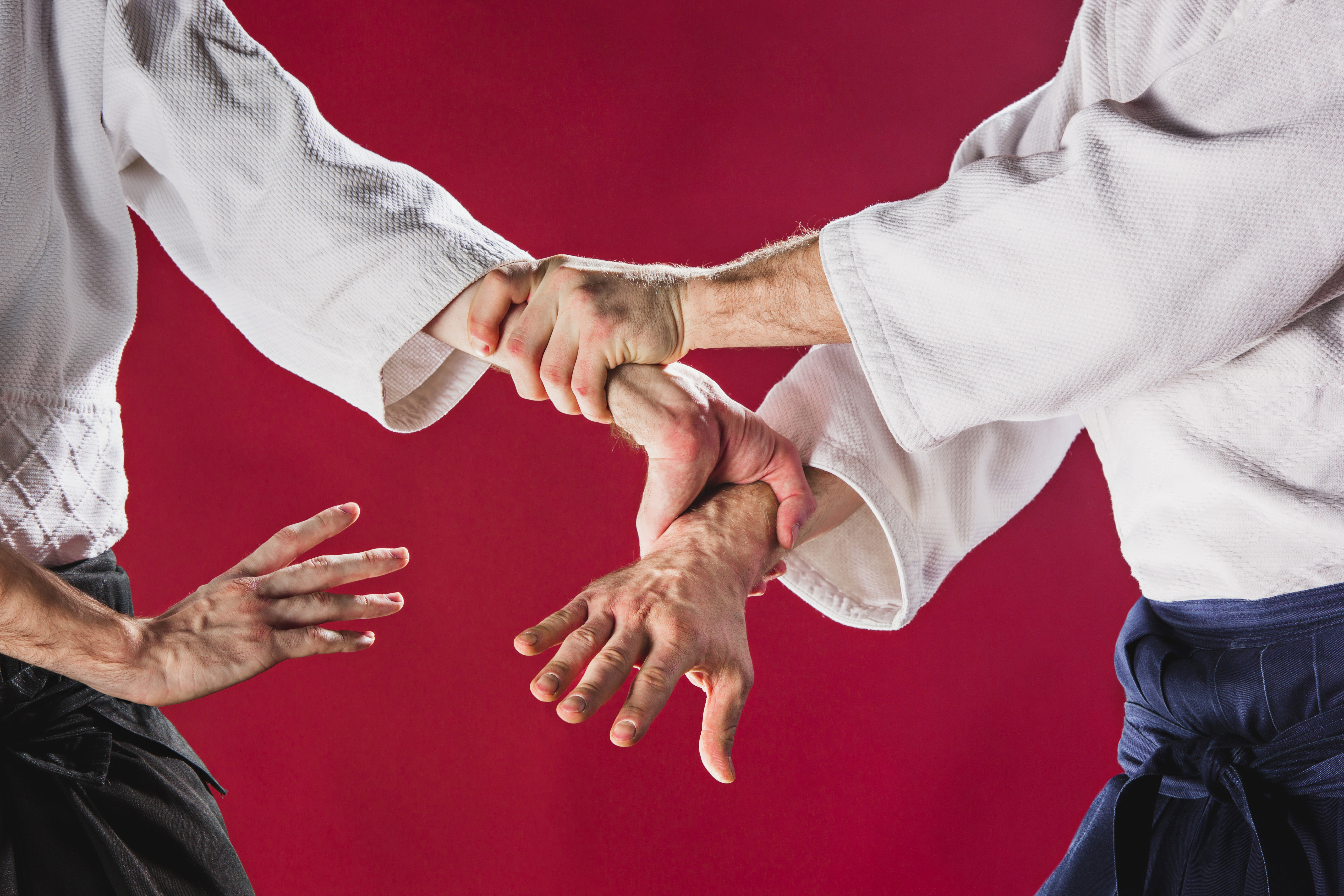The two men are training Aikido at studio Two men fighting at Aikido training in martial arts school Two men fighting at Aikido training in martial arts school. Healthy lifestyle and sports concept. Men in white kimono on red background. Male hands closeup on red studio background September 23, 2019 0Comments 570Views 0Likes